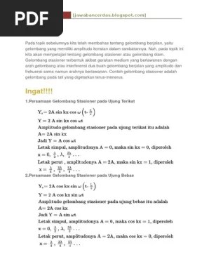 Probabilitas dan statistika bab 2 peubah acak dan distribusi peluang ppt download from slideplayer.info. Sekarang kita cukup cari panjang gelombang. Karena gelombang ini terdiri dari satu gelombang, baik yang dapat maupun terpantul, maka persamaannya akan mengalami berbagai perubahan. soal dan pembahasan gel stasioner. gelombang stasioner pada tali dengan ujung bebas. Suatu gelombang transversal mempunyai persamaan : Pernyataan yang benar adalah sebagai berikut. pada tali terbentuk 3 gelombang penuh. Menjelaskan persamaan simpangan gelombang stasioner pada ujung terikat. Gambar gelombang berjalan kecepatan dan percepatan gelombang berjalan. Dari gambar terperinci bahwa gelombang tiba merambat ke kanan sanggup. Berdasarkan ujung pemantulnya dapat dibagi dua yaitu ujung terikat dan ujung bebas. Bola diberi kecepatan awal aga.